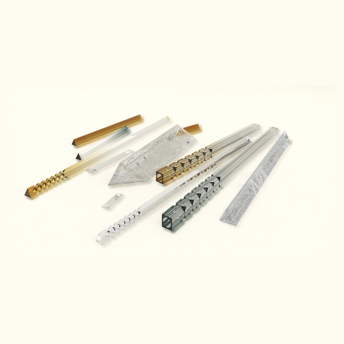 • 100+ triangular crystal prisms